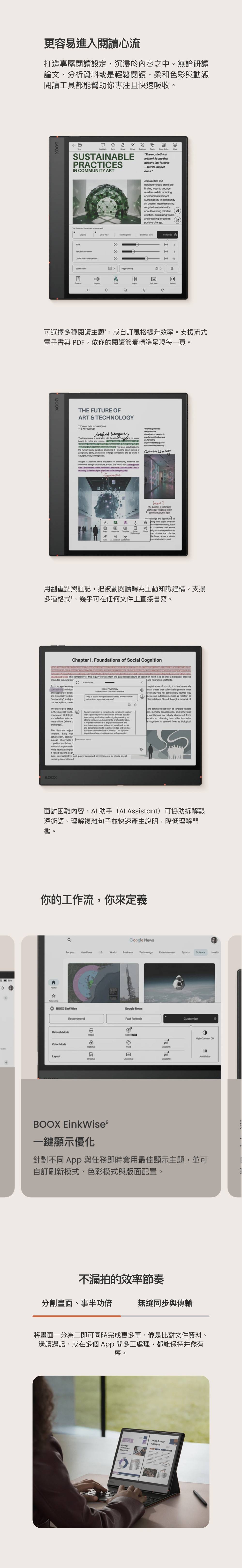 ●10.3吋彩色Kaleido 3超高畫質Carta 1200電子紙顯示幕