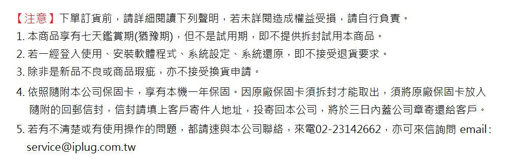 配件:電池(內建)、USB線、一年保固卡、使用說明書。
