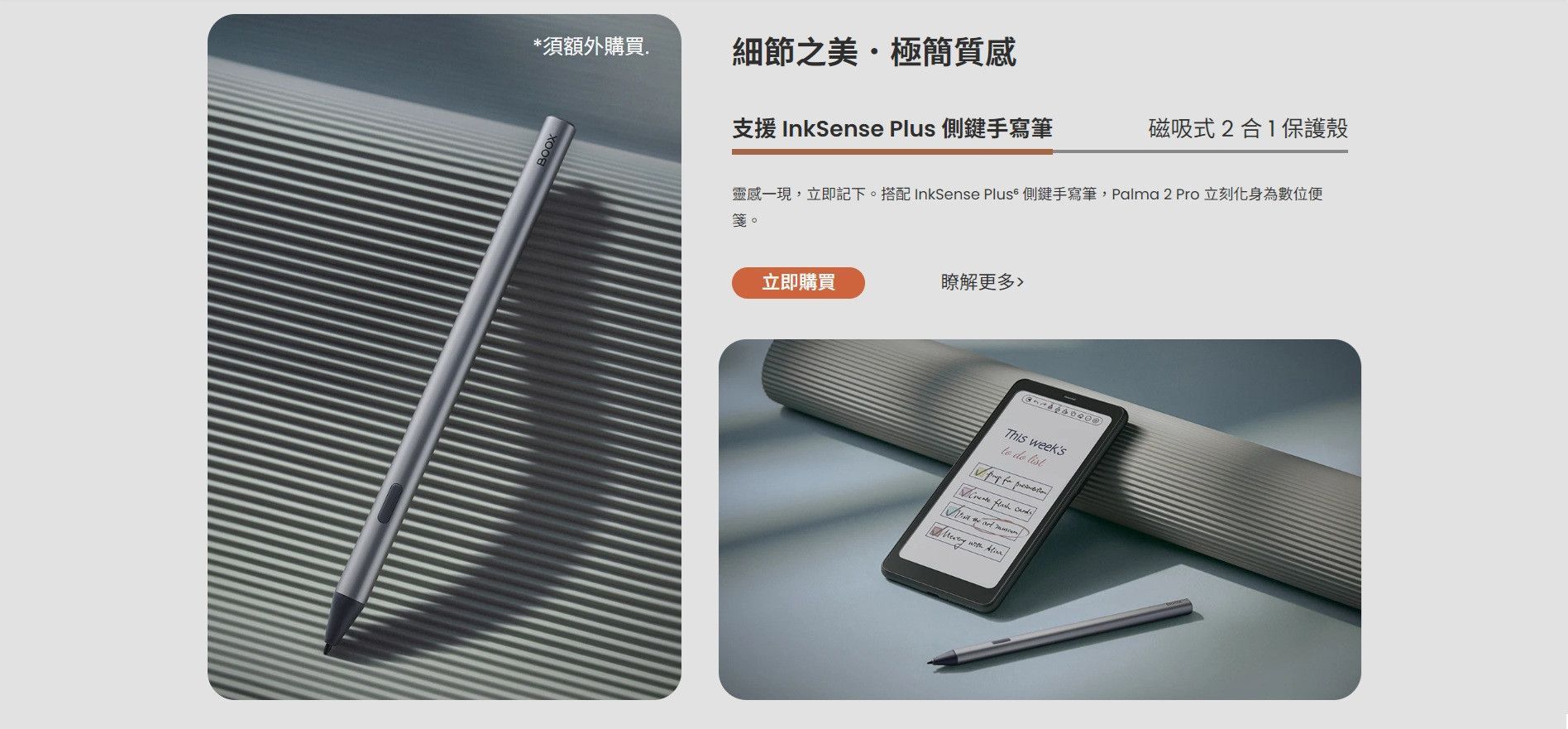 加購品:二合一翻頁式皮套(PU材質)、手寫筆InkSense Plus